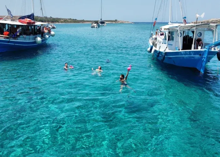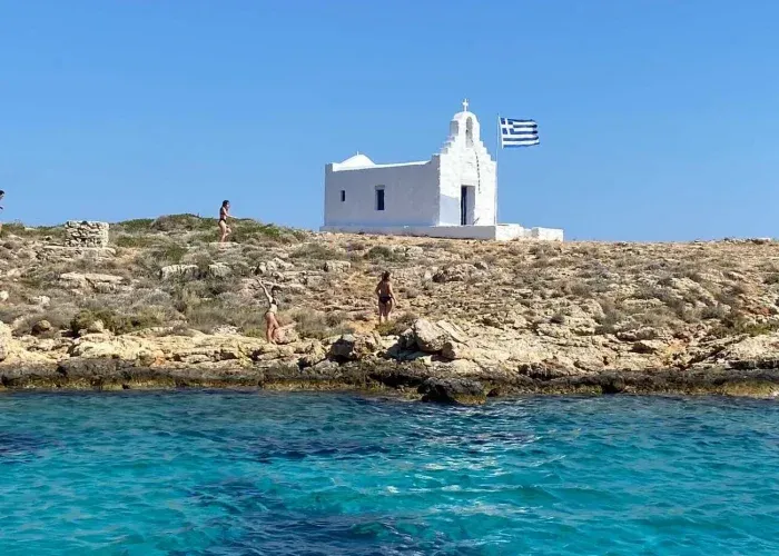 Quatre heures de découverte de la sérénité cycladique, en parcourant les eaux bleues fascinantes des îles désertes entre paros et antiparos.
